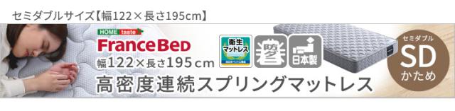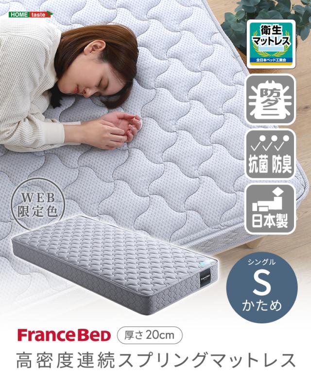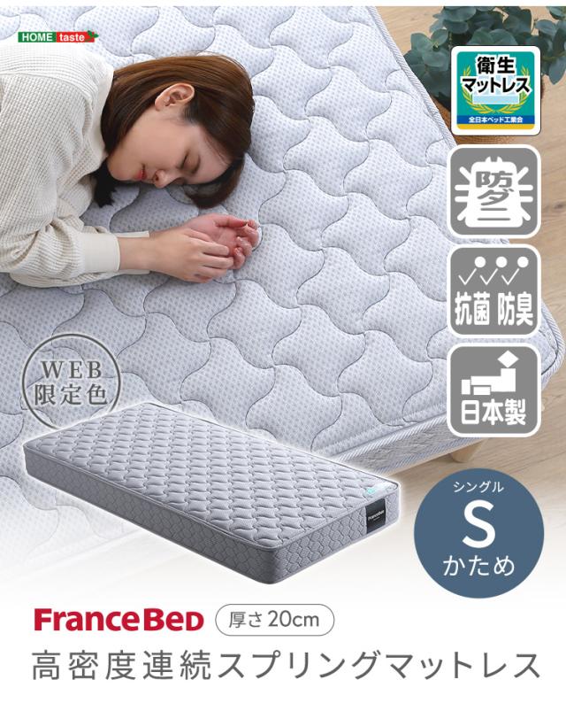 日本製 フランスベッド 高密度連続スプリングマットレス Sサイズ マットレス ベッドマットレス 敷布団 シングルベッド 97x195 硬め 防ダニ 抗菌 通気性 耐久性 両面仕様 2年保証 キルティング おしゃれ 新生活