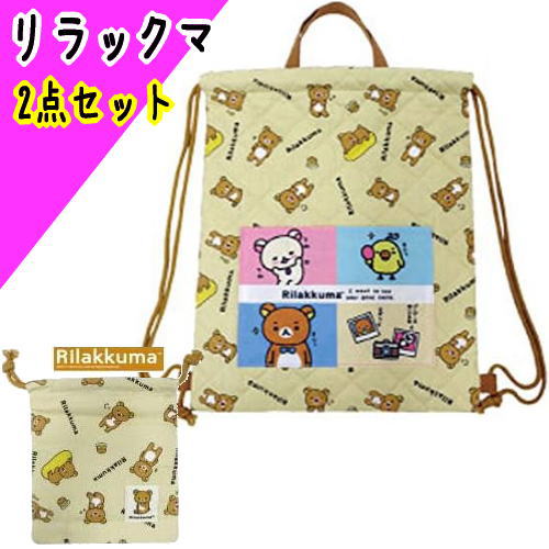 (おまかせ便で送料無料) 2点セット キャラクター ナップサック 巾着 リラックマ 入園準備 入学準備 通園 通学 K9015B K9019B IV