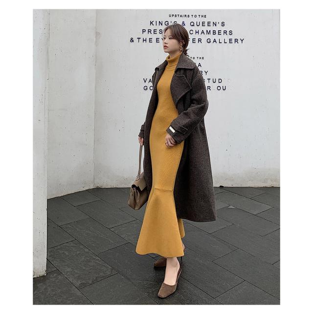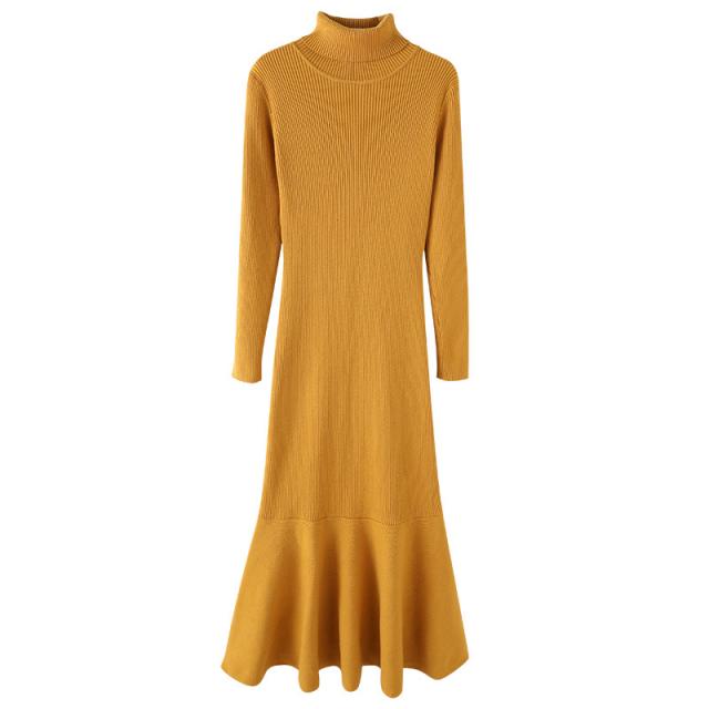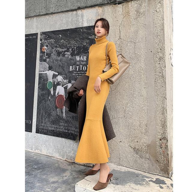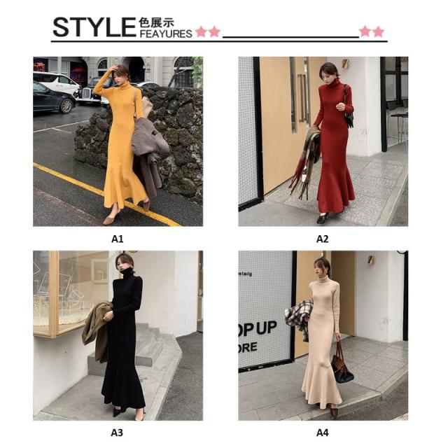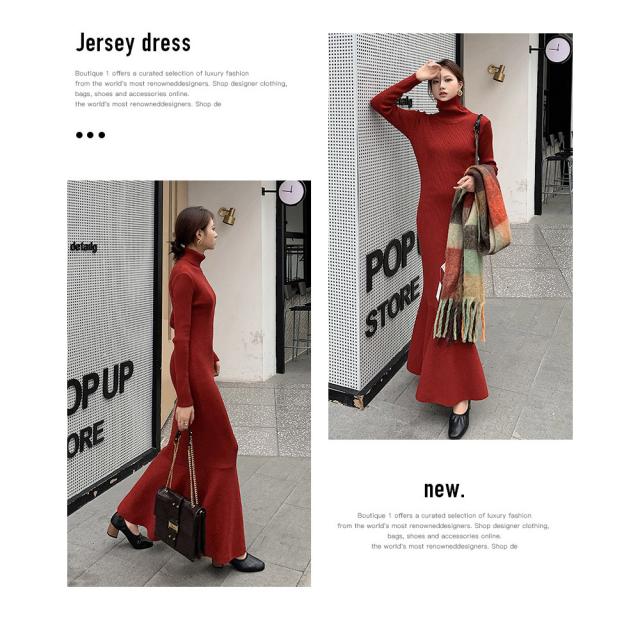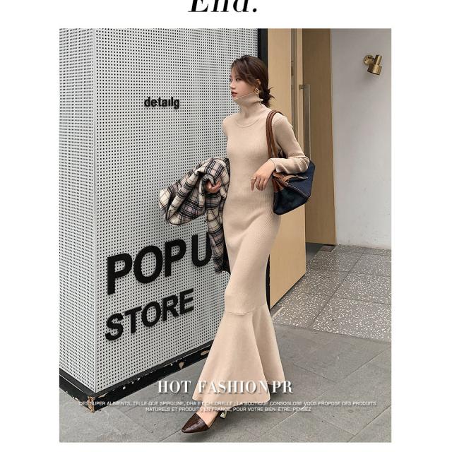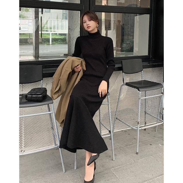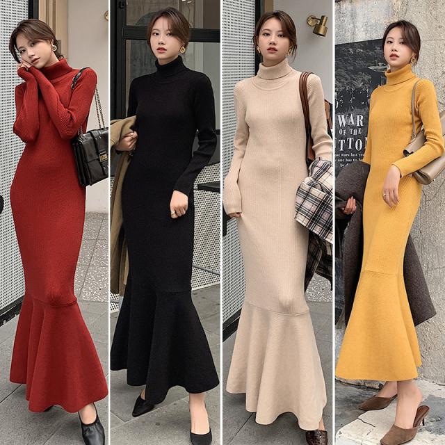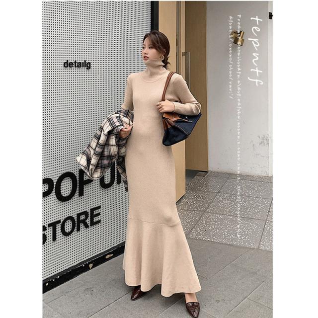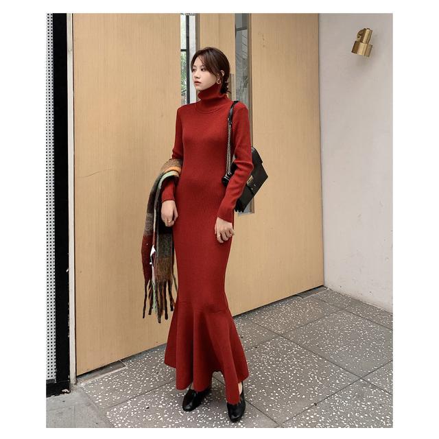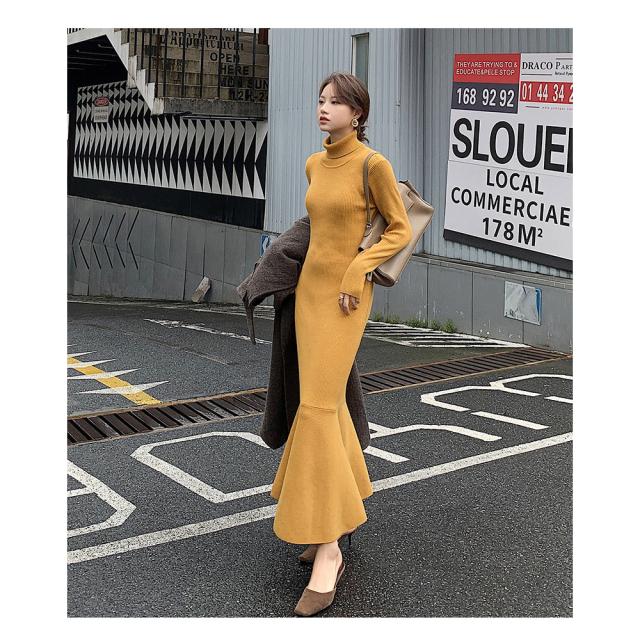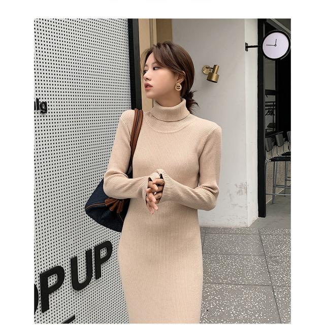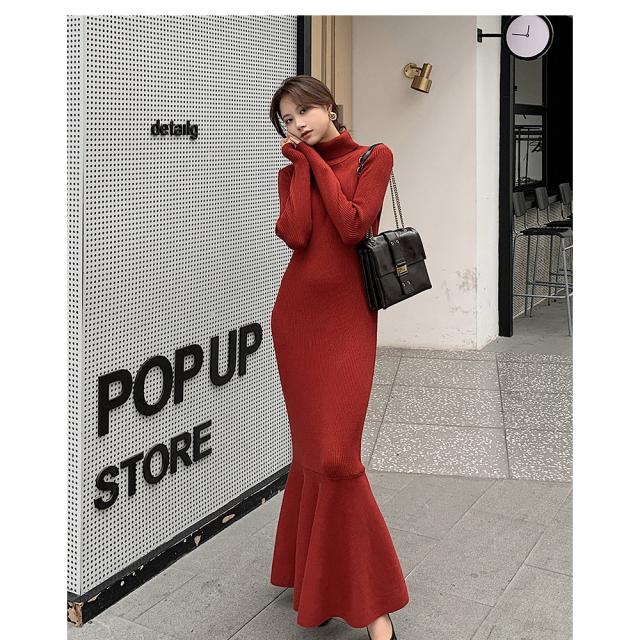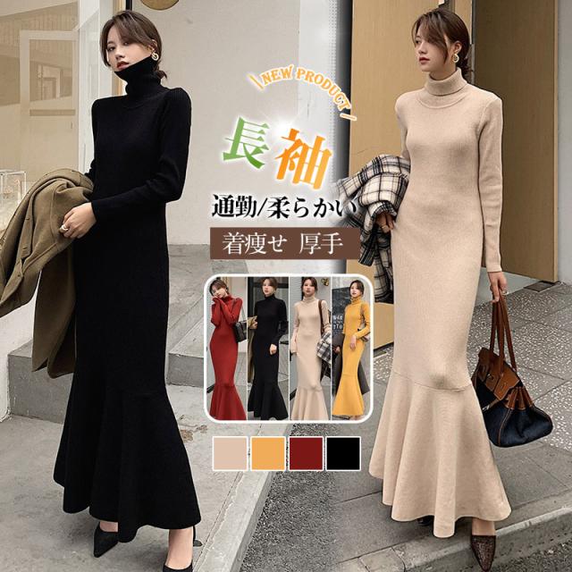 ワンピース ニットワンピース レディース ロング丈 ニット 結婚式 長袖 ハイネック ストレッチ チュニックワンピース ニットワンピ タイト 春秋冬