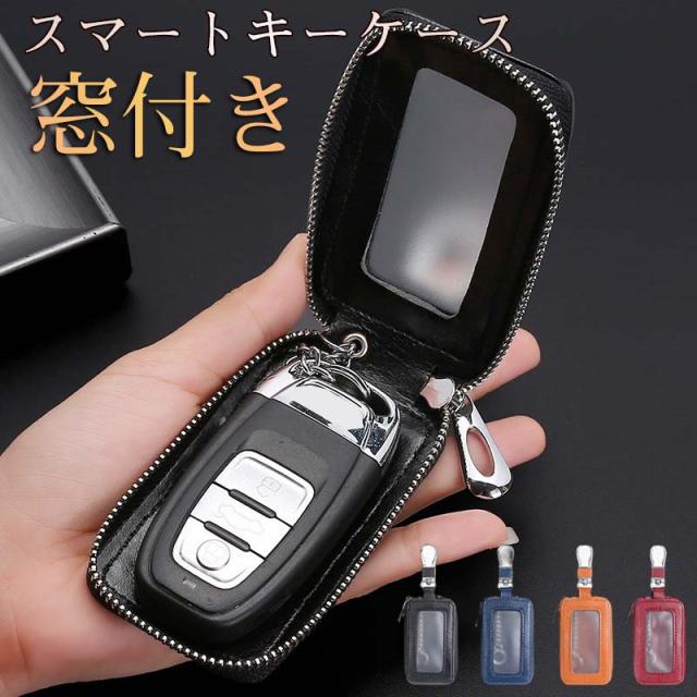 クリア窓 スマートキーカバー ギフト 贈り物 持ち歩き 持ち運び コンパクト 小物入れ 鍵入れ 落下防止 多機能 紛失防止 かさばらない シンプル おしゃれ かわいい スマートキーケース キーケース レディース 革 スマートキー 車 小銭入れ付き キーポーチ 可愛い カギ 鍵ケース メンズ クリア窓付き カラビナ付き ダブルジッパー チェーン 自動車 車