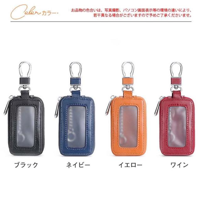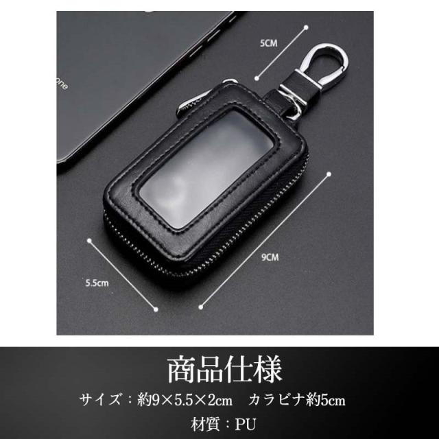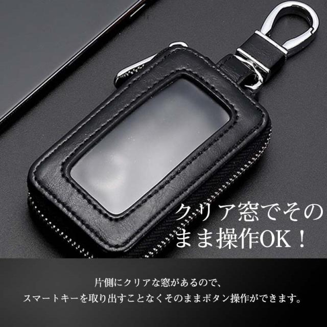 スマートキーケース 窓付き キーケース カラビナ付 レザー ファスナー レディース 自動車 車 鍵 カギ ケース 鍵ケース コンパ