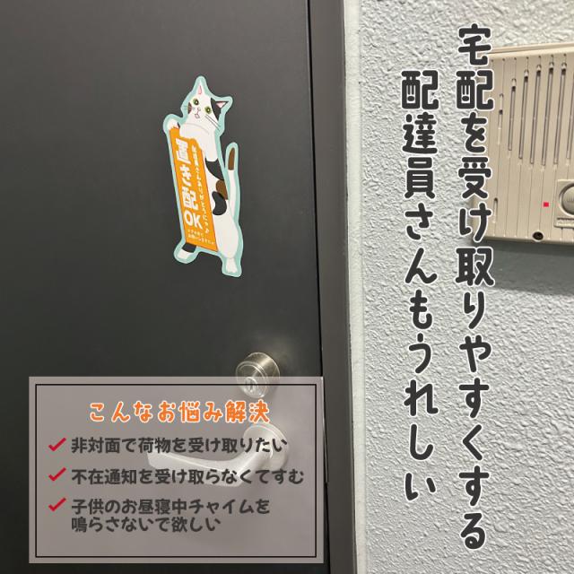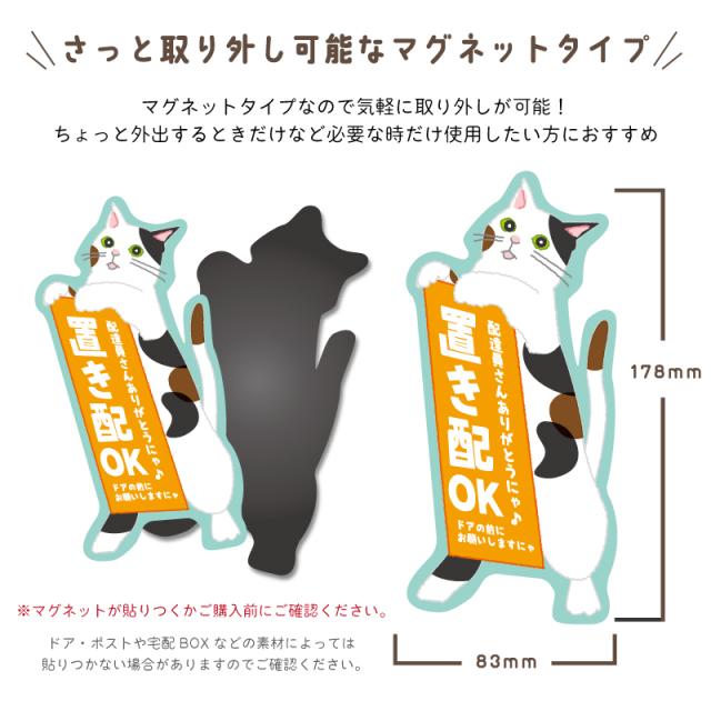 置き配マグネット 猫 縦長タイプ 宅配BOX ドアの前 選べる文言2タイプ マグネットタイプ 宅配 玄関前チャイム インターホン 不要 ありがとう 感謝 メッセージ 猫 ネコ おしゃれ 宅急便 不在時 留守 荷物 ステッカー 可愛い かわいい カワイイ 送料無料 配達