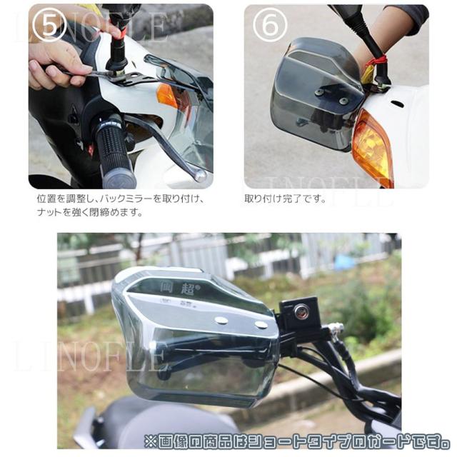 【大きめで安心のデザイン】ナックルガードは長めの設計でデザインされているため、運転中のの耐風性があがり、防風・防寒の範囲が広がります。