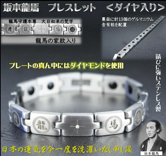 坂本龍馬 グッズ ゲルマニウム ブレスレット 大日如来 梵字 守り本尊 【坂本龍馬 ブレスレット ダイヤ入り】【メール便送料無料】 アクセサリー メンズ レディース ダイヤモンド 幸運 厄除け 魔除け 護符 桔梗 is