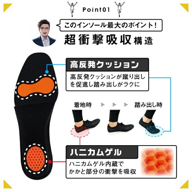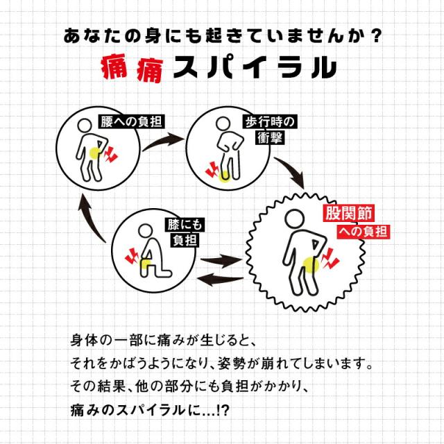 商品詳細: 股関節ムーブサポートインソールは、足に負担をかけるスポーツや立ち仕事などにおいて、股関節痛やO脚、痛みの軽減に適しています。 アーチサポートとかかとの衝撃吸収機能に加え、靴底の摩擦を防ぐ滑り止め機能がついており、快適かつ安心してお使いいただけます。 さらに、弾力性に優れた素材でできているので、長時間履いても疲れにくく、靴のフィット感を向上させます。 日常生活やスポーツをこれまで以上に快適に、そして健康的に過ごすために、ぜひこのインソールをお試しください。 股関節補正機能が、内側傾斜を促し、身体の歪みを補正することで正しい歩き姿勢へ導きます。 腰痛に悩むシューフィッター × 整体師 開発!股関節痛対策特化型インソール!