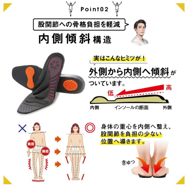 股関節補正機能が内側傾斜を促し身体の歪みを補正!股関節痛対策インソール!