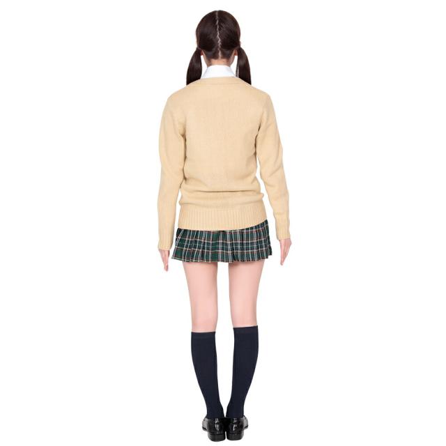 ■様々なご要望にお応えします【カーディガン 制服 リボン 青 コスプレ セット ベージュ セーター ハロウィン イベント 仮装 大人 レディース 女性 可愛い jk 女子高生 vネック スクールカーディガン プリーツスカート ミニ ミニスカート コスチューム 一式 コス 衣装 洗濯可 洗える 通販 送料無料】