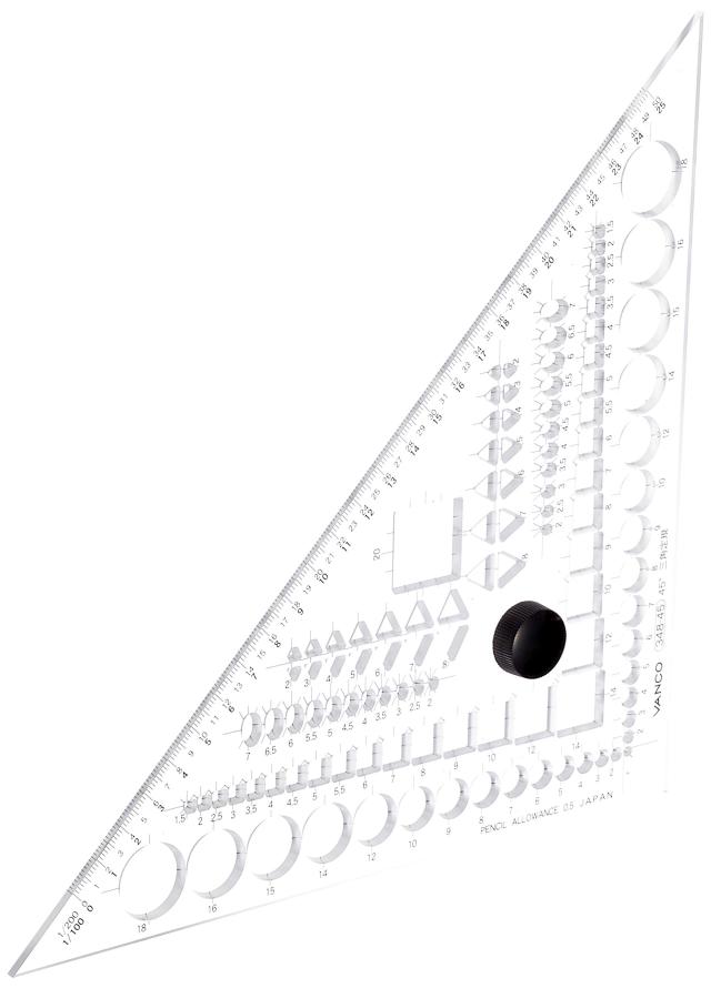 一級建築士試験合格者の声を集約したツール つまみを持ってテンプレートをクルクル 製図が素早く描けます。 *建築士試験場で使用不可になった報告はありませんが、念の為に従来のテンプレートもご持参ください(バンコ202-80等)