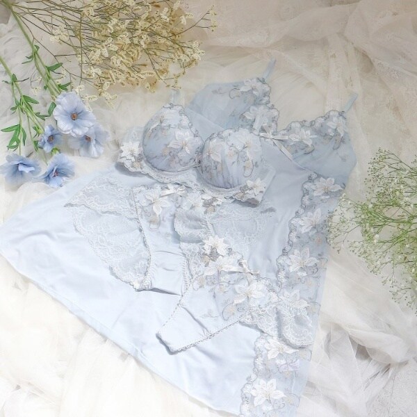 レース全体に小花を散りばめ、ツルの中にはさりげなく格子柄をあしらうなど、心ときめくディテールをプラスしました。
