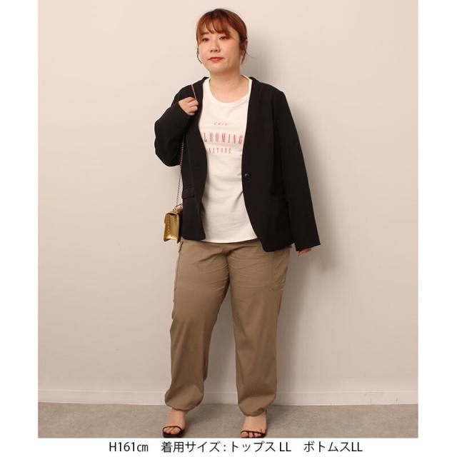 【大きいサイズ】【セットアップ・ウォッシャブル】ノーカラー ジャケット