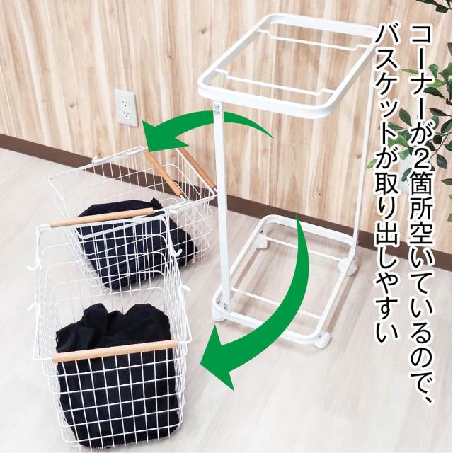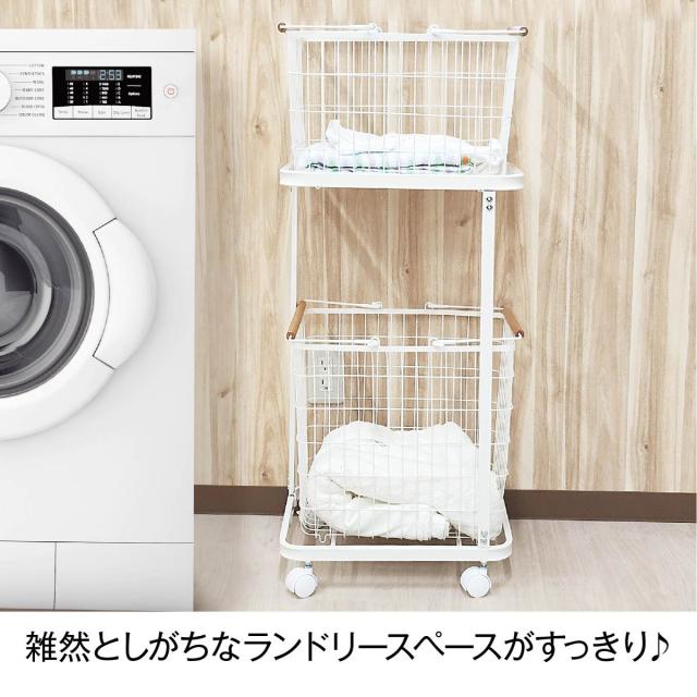 縦に配置されたサイズの違う2つのバスケットで、洗濯物を分離できるので便利です。