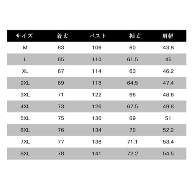 | サイズ | M L XL 2XL 3XL 4XL 5XL 6XL 7XL 8XL |