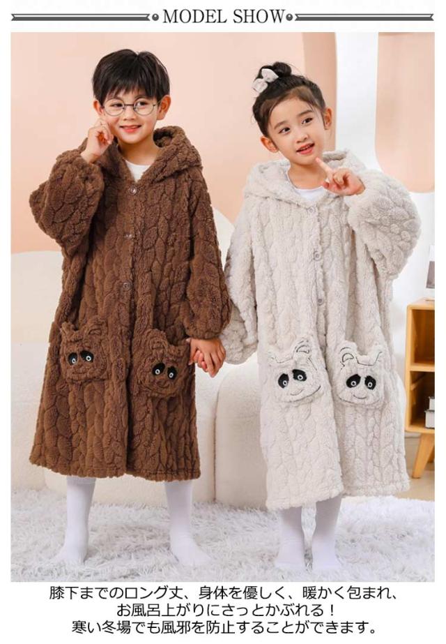 着る毛布 フード付き パジャマ 子供 ルームウェア バスローブ キッズ パジャマ ロング ガウン 膝下 パンダ 熊 着ぐるみ 子供パジャマ もこもこ フランネル 防寒 保温 寝巻き 部屋着 春秋 冬 あったか ガウン ナイトウェア 厚手 もこもこ
