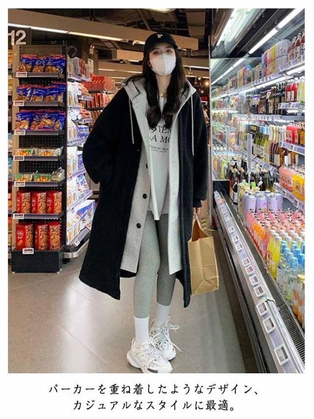 ボアコート ロング レディース 重ね着風 フェイクレイヤード フード付きコート ボアパーカー ロング丈 ボアジャケット 防寒 保温 あったか マウンテンパーカー フリースジャケット 着る毛布 もこもこ アウター