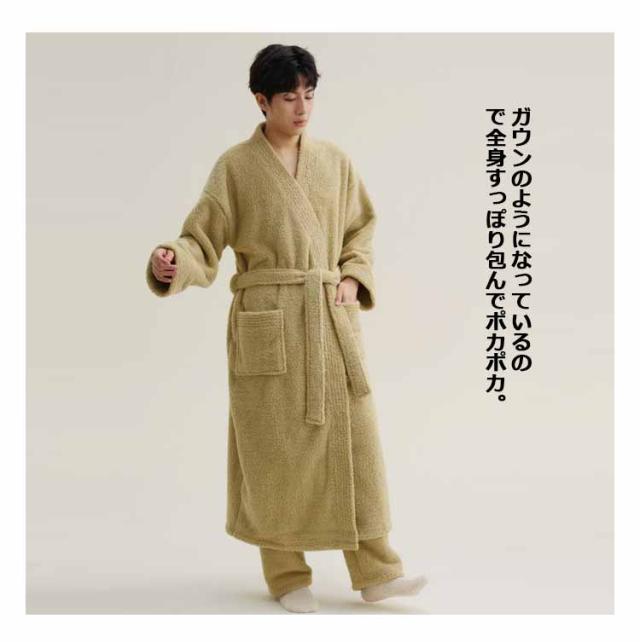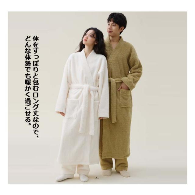 ホームウェア レディース メンズ パジャマ ルームウェア 冬 ガウン バスローブ 厚手 ロング シャギー モコモコ ボアフリース 部屋着 着る毛布 ポケット付き 前開き ウエスト紐 防寒 保温 暖かい 寒さ対策 テレワーク ルームウェア 外出 ペア カップル 無地