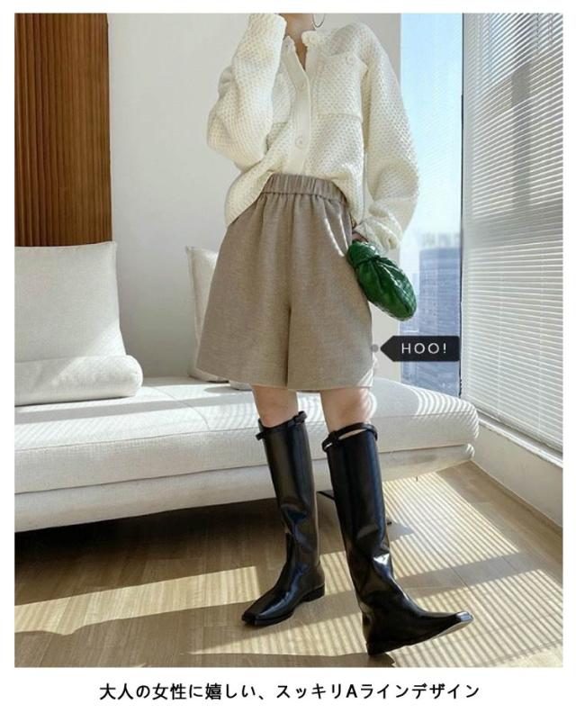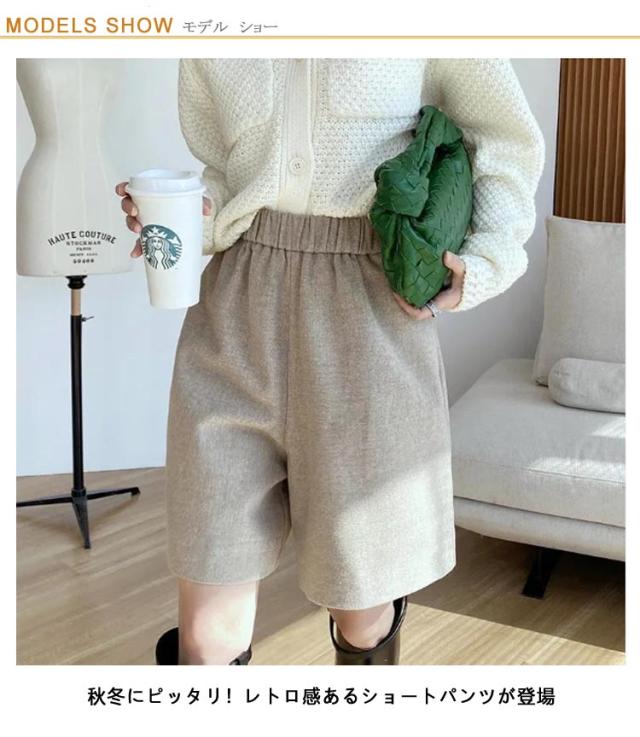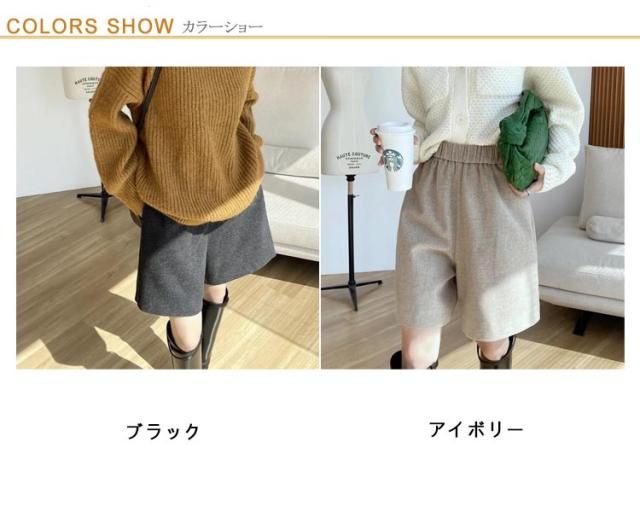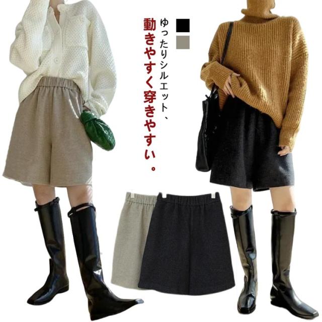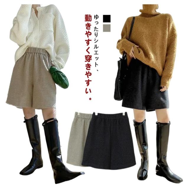 レディース 五分丈 膝丈 ゆったり ショートパンツ ミニ丈 ショーパン 無地 キュロットパンツ 短パン ハーフ丈 ひざ上 Aライン ハーフパンツ ハーフパンツ 体型カバー 秋冬 暖かい 防寒 シンプル 上品 きれいめ 秋冬 秋 冬