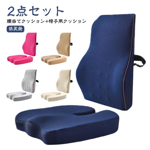 2点セット クッション 腰痛対策 腰当てクッション 椅子用クッション 背もたれ シートクッション チェアクッション 椅子 人間工学 クッション 2点セット 低反発 腰枕 腰サポート 骨盤サポート お尻クッション 座布団 腰用クッション オフィス テレワーク 運転