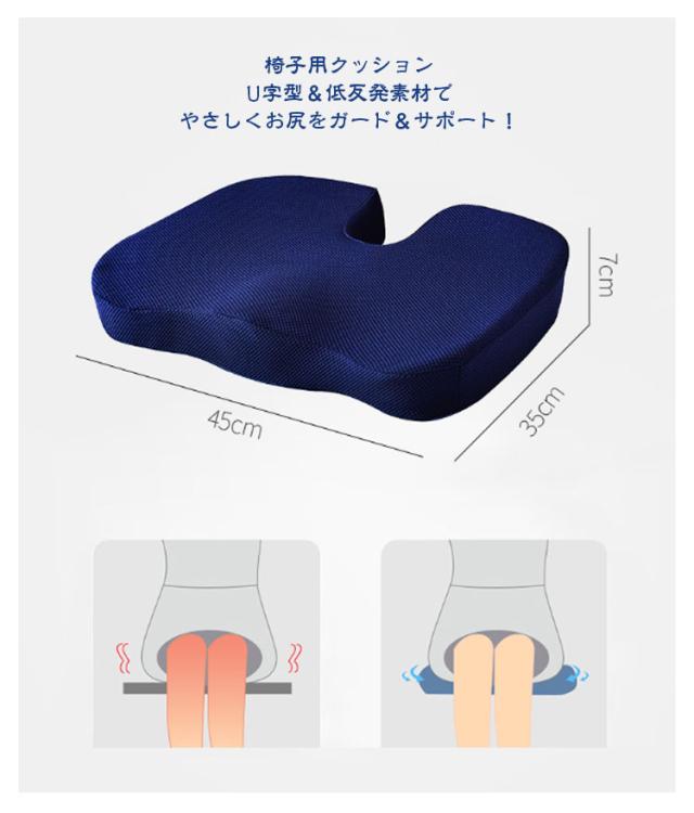 | 【商品名】腰当てクッション+椅子用クッションの2点セット 【サイズ】腰当てクッション:37*44*12cm/椅子用クッション:45*35*7cm 【素材】中材:低反発メモリーフォーム 【特徴】 人間工学に基づいた設計されたクッション。 低反発メモリーフォーム素材を採用。柔らかすぎず硬すぎない適度な反発力で体圧を分散することで長時間座っていても快適です。 日々のオフィスワークや長距離運転などが多い方、テレワークの方など快適に座りたい方にオススメです。 ★腰クッション★ 頭から腰にかけてのS字カーブをしっかり支えます。 背筋が自然に伸びることで腰への負担を減らします。 椅子とズレにくいベルト付き◎ 中央の突起が背中や腰に心地よい刺激を与えてくれます。 ★椅子用クッション★ U字型&低反発素材でやさしくお尻をガード&サポート! クッションの形状はU字型を採用し、さらに凹凸設計なので尾骨への圧迫感が少なく、より軽やかな座り心地を楽しめます。 両側の弧線形状の設計でお尻の圧力がよく吸収されて、長時間座っても疲れにくい。 裏面は滑り止め付きなのでズレにくい◎ | |