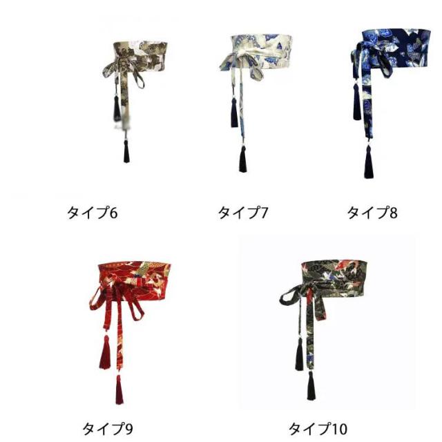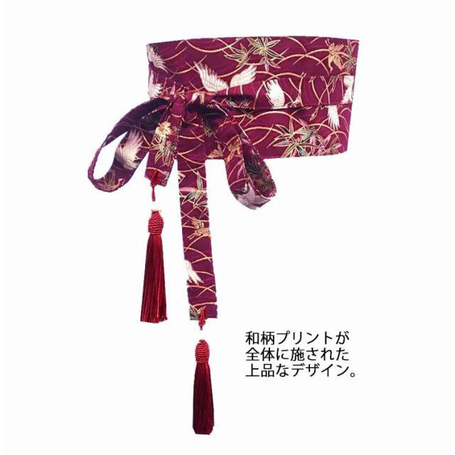 レディース 帯 サッシュ コルセット ベルト チュニック サッシュベルト ハイウエスト 太ベルト ワンピース 和風ベルト 鶴柄 桜柄 和柄 着物 和風ベルト ウエストマーク フリンジタッセル おしゃれ 太め 幅広