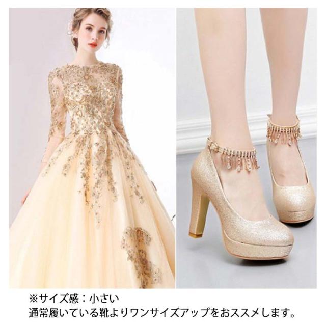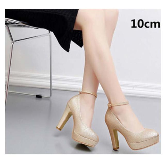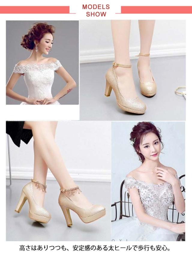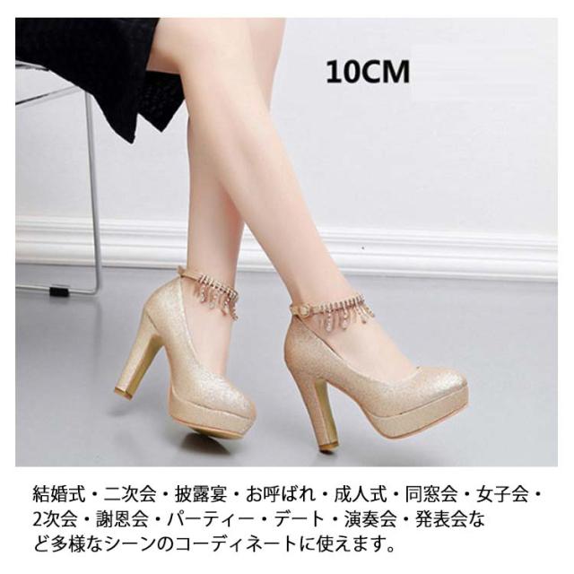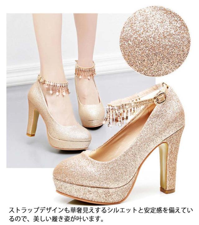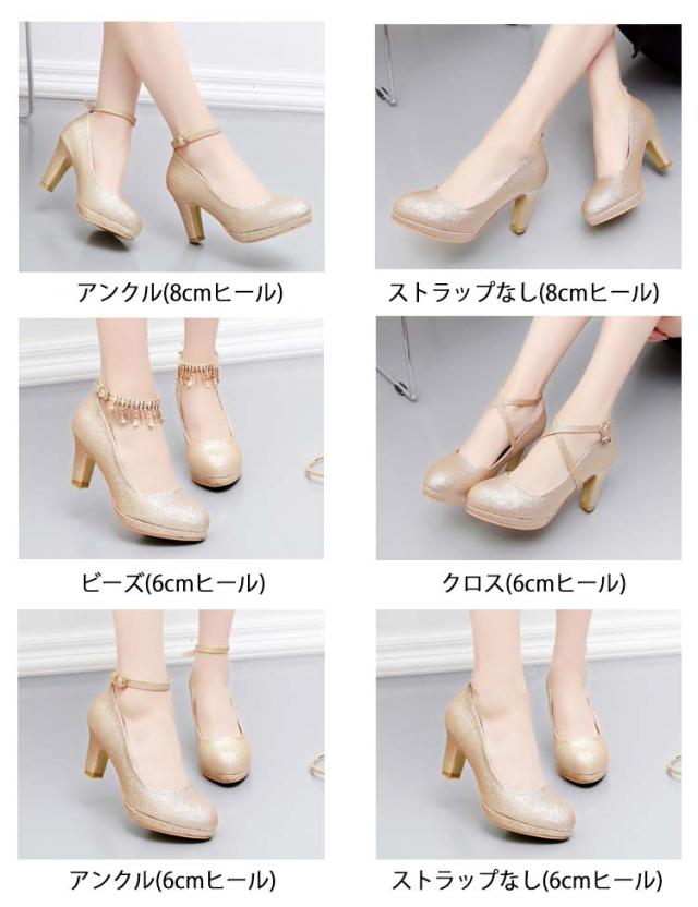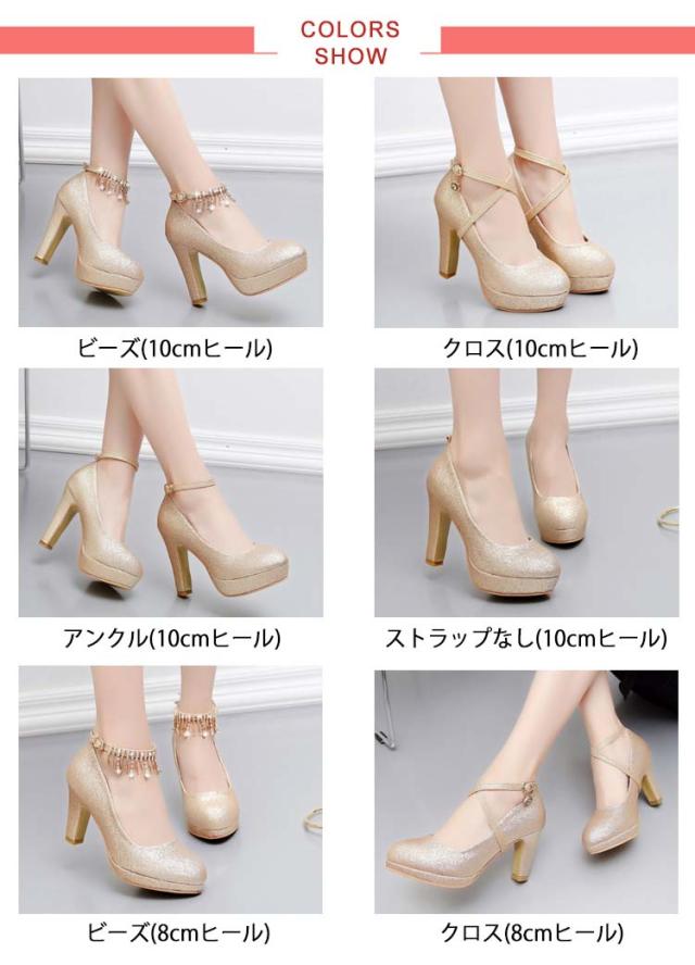 ブライダルシューズ パンプス ラメ ウエディングシューズ 靴 花嫁 太ヒール グリッター ストラップ クロスストラップ ブライダルシューズ ゴールド ラウンドトゥ パーティーシューズ パーティドレス 二次会 アンクルストラップ 選べる4タイプ 10cmヒール 8cmヒール
