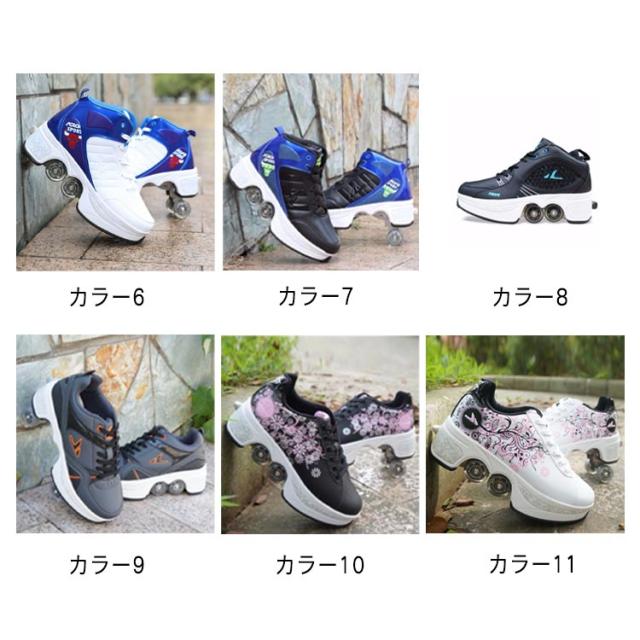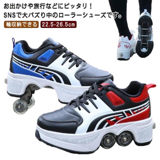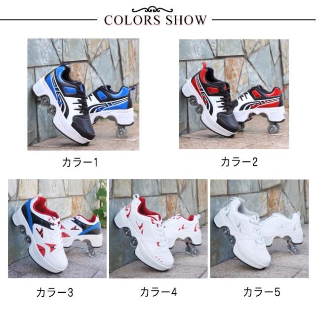 子供 シューズ ローラーシューズ ローラースケート ローラーシューズ ローラースニーカー スケート 4輪 運動靴 スポーツ かっこいい キッズ 輪収納できる 初心者向け 練習 大人 子供の日 クリスマス 誕生日 プレゼント