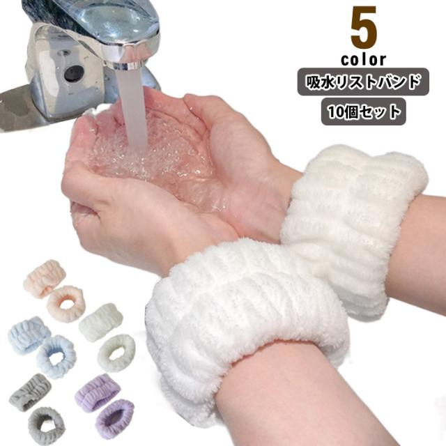 マイクロファイバー 5色 洗顔時 洗顔 【10個セット】吸水リストバンド シュシュ ふわふわ 袖濡れ防止 吸水バンド 大人 子供 服濡れ防止 速乾 柔らかい 手首バンド 伸縮性 手首用汗止め メイク 洗い替え