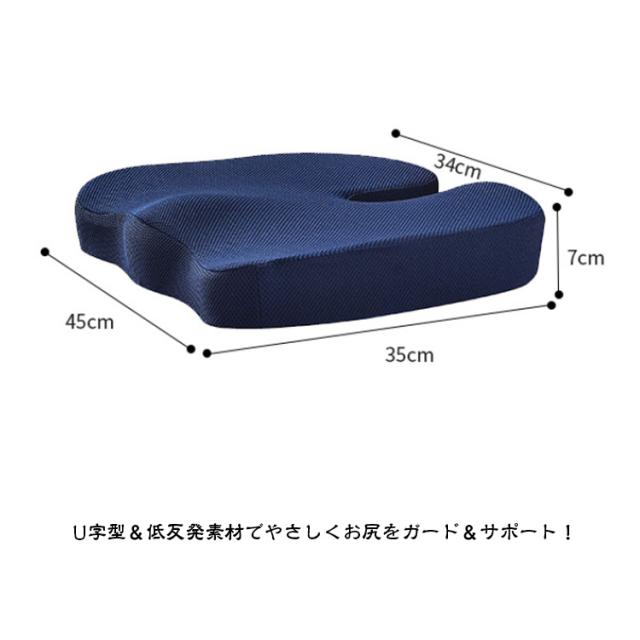| 【商品名】椅子用クッション 【サイズ】椅子用クッション:45*35*7cm 【素材】中材:低反発メモリーフォーム 【特徴】 U字型&低反発素材でやさしくお尻をガード&サポート! 人間工学に基づいた設計された椅子用クッション。 クッションの形状はU字型を採用し、さらに凹凸設計なので尾骨への圧迫感が少なく、より軽やかな座り心地を楽しめます。 両側の弧線形状の設計でお尻の圧力がよく吸収されて、長時間座っても疲れにくい。 低反発メモリーフォーム素材を採用。柔らかすぎず硬すぎない適度な反発力で体圧を分散することで長時間座っていても快適です。 日々のオフィスワークや長距離運転などが多い方、テレワークの方など快適に座りたい方にオススメです。 裏面は滑り止め付きなのでズレにくい◎ | |