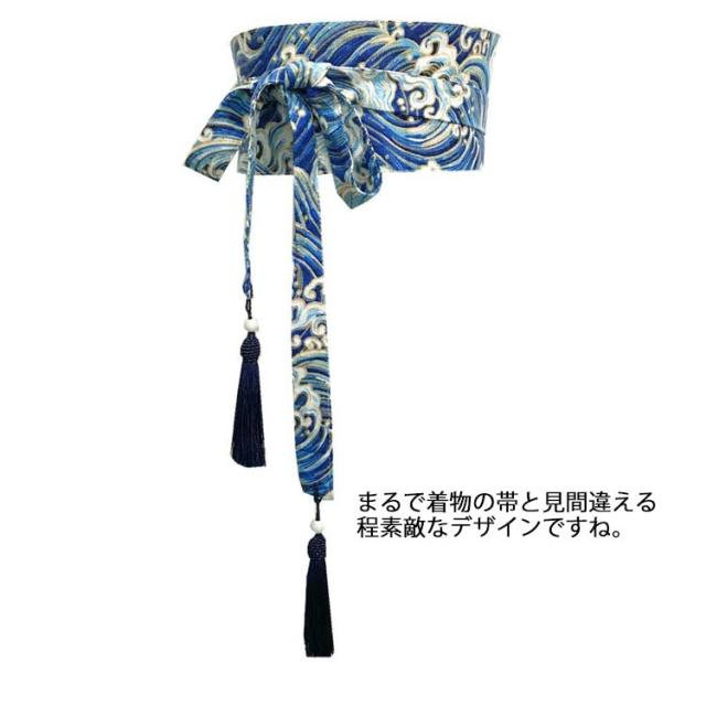 サッシュ 和風ベルト ハイウエスト リボン 和風ベルト ベルト ワンピース 着物 太ベルト コルセット チュニック 鶴柄 桜柄 和柄 サッシュベルト 帯 ウエストマーク フリンジタッセル おしゃれ 太め 幅広