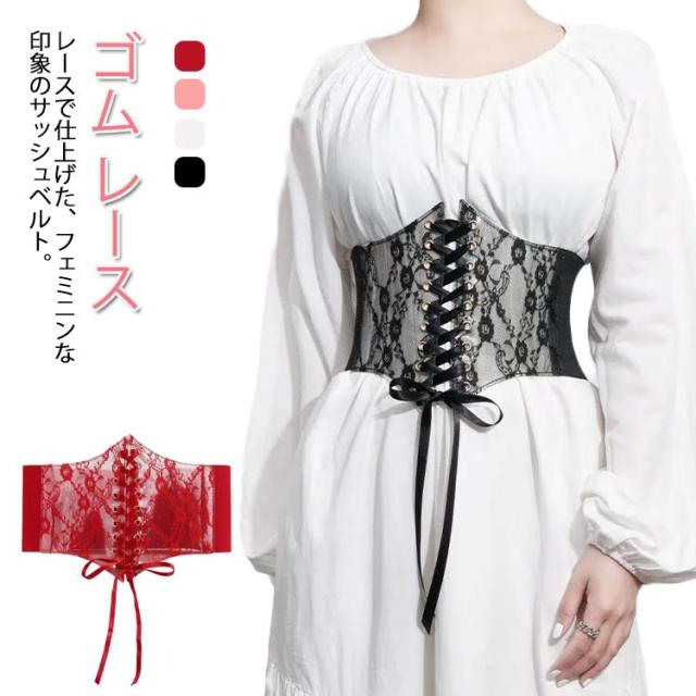 結婚式 ブラック サッシュベルトサッシュ ベルト コルセット 太め 太ベルト 幅広 細見え レディース 韓国 きれいめ 大人 レースアップ レース ハイウエスト ウエストマーク ワンピース チュニック 可愛い ホワイト 黒 白