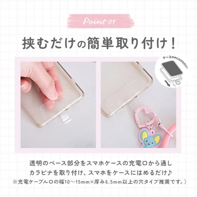 | 商品説明 | ・マルチホルダーやハンドストラップとして使える!「マルチリングプラス」にシリコンブレスレットタイプが仲間入り☆(対象年齢15歳以上) 【着脱簡単!ケースの中に挟むだけ】 ・ベース部分をお手持ちのスマホケース充電口から通し、カラビナを取り付けて本体機種をケースにはめるだけ。取り付けも取り外しもあっという間!(※充電ケーブル口の幅10〜15mm×厚み6.5mm以上の穴タイプ推奨です。) 【持ちやすく落ちにくいブレスレット】 ・シリコンブレスレットに手首を通すことで、スマホの持ちやすさが向上!うっかり手が滑って、スマホが落下する危険も防げちゃう◎ 【シーンに合わせて使い方をチョイス】 ・カラビナ部分にはストラップ類やメガネ・鍵・マスクをかけるも良し。カバンやベルトループに付けたりと、使い方は自分次第☆ 【お気に入りのキャラクターとお出かけ】 ・自由にアレンジを楽しめて、いつも一緒にお出かけできる♪キャラクター好きな方へのギフトにもおすすめ。 |