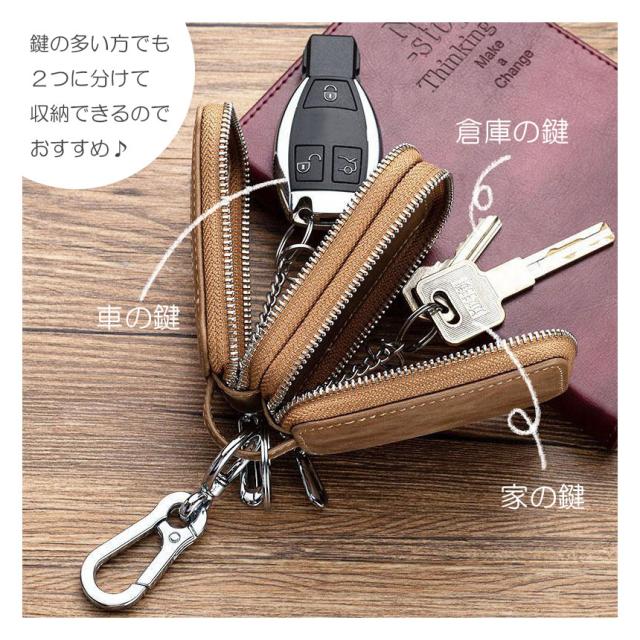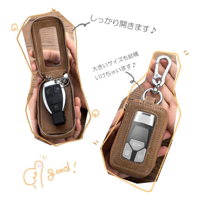 【スマートキー対応の2個収納キーケース&2カラー】使いやすいブラック、ブラウンの2色をご用意しました。どちらのカラーも定番の使いやすいカラーです。ラウンドファスナーなので、出し入れもしやすいです♪