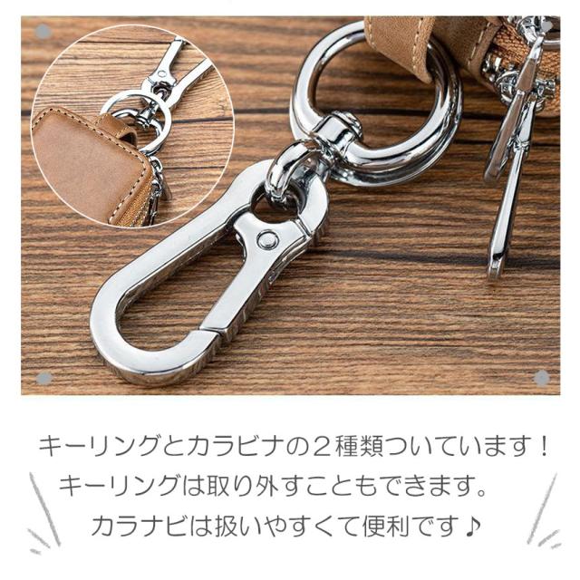 2つ収納ケースがあるので、車の鍵、家の鍵などを別けつつも1つにまとめることができます。サッと取り付けることができる快適な使い心地のカラビナフックとキーリングの2種類を採用しています。