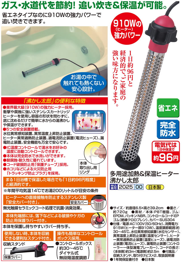 多用途加熱&保温ヒーター 沸かし太郎 湯沸かし お風呂 湯沸かしヒーター 追い炊き 追い焚き 電気湯沸かし器 保温 省エネ 日本製 送料無料