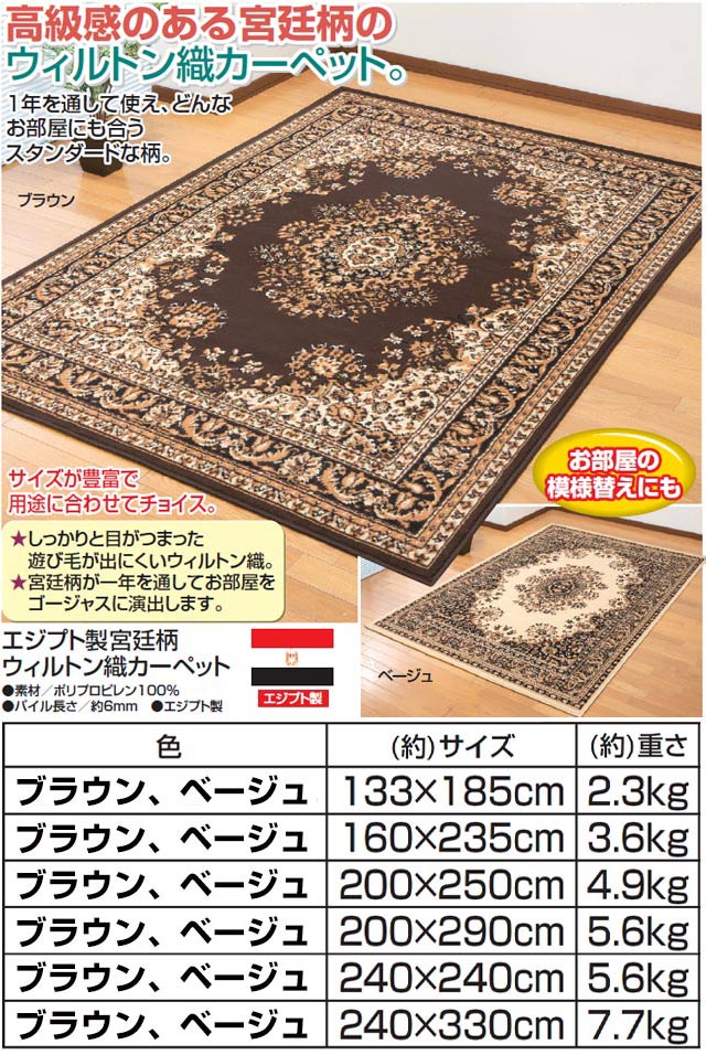 高級感のある宮廷柄のウィルトン織カーペット。サイズが豊富で 用途に合わせてチョイス。しっかりと目がつまった遊び毛が出にくいウィルトン織。