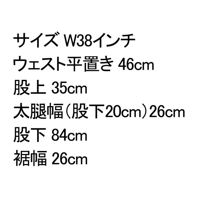 ・サイズW38インチ/ウェスト平置き46cm/股上35cm/太腿幅(股下20cm)26cm/股下84cm/裾幅26cm