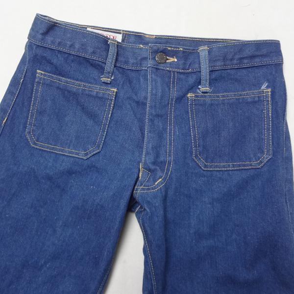 バイソンBISONのベルボトムジーンズ、実店舗の店頭展示品を1度クリーニングしただけの未使用品、ブルーフレアージーパン、綿100%