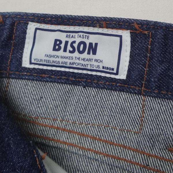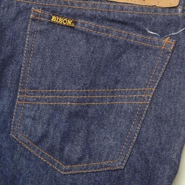 バイソンBISONの日本製ベルボトムジーンズ、実店舗の店頭展示品を1度クリーニングしただけの未使用品、ブルーフレアージーパン、綿100%