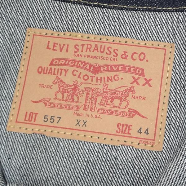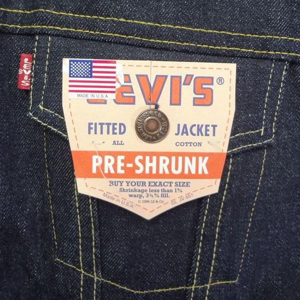 リーバイスのヴィンテージ復刻3rdジージャン、米国製バレンシア工場製造デニムジャケット、トップボタン裏刻印555