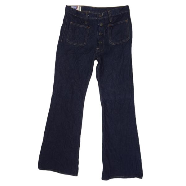 ボブソンBOBSONのフレアージーンズ、実店舗の店頭展示品を1度クリーニングしただけの未使用品、綿100%、レア物、ベルボトムブルージーパン、ラッパGパン、裾上げ無料
