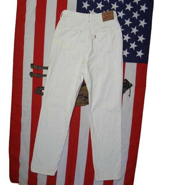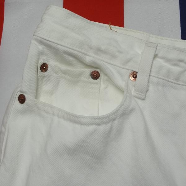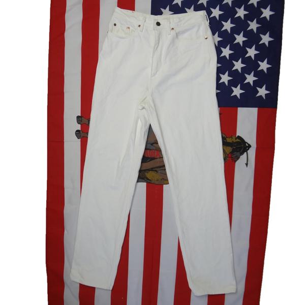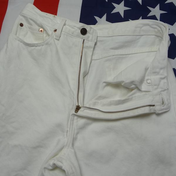 リーバイスのレディース日本製W515ストレートジーンズ、実店舗の店頭展示品を1度クリーニングしただけの未使用品、綿100%、1995年1月製造、ハイウェスト、ホワイト、白