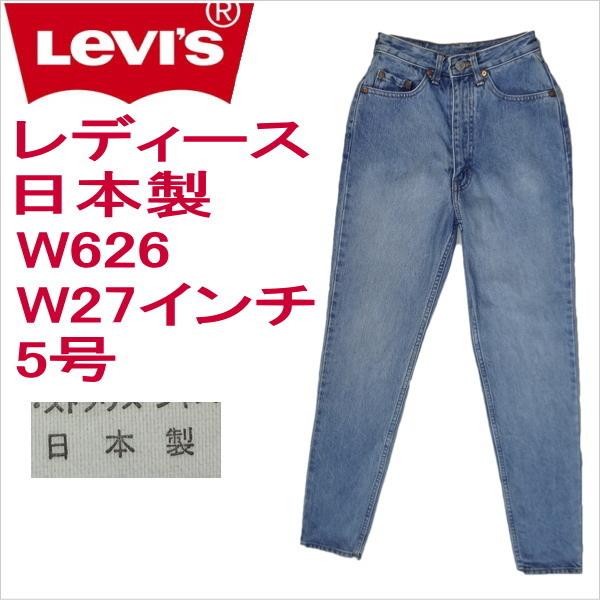 リーバイスのレディース日本製W626スリムジーンズ、実店舗の店頭展示品を1度洗濯しただけの未使用品、綿100%、1991年7月製造・洗濯済、ボタンホールや股付け根にダメージはありません、ひざ裏に薄い色むらがあります(画像参照)・サイズW27(5号)/ウェスト平置き27cm/股上30cm/股下74cm/裾幅14cm・スモールeレッドタブ、アーキュエットステッチ、5ポケットリベット、ジッパー使用、ペーパーパッチすそ上げ裾上げ無料MADE IN JAPANulvsw626-220503c在庫わずか残りわずか