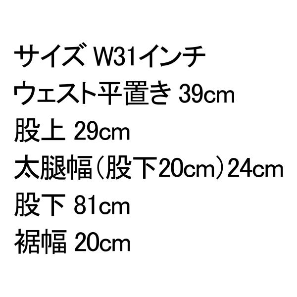 ・サイズW31インチ/ウェスト平置き39cm/股上29cm/太腿幅(股下20cm)24cm/股下81cm/裾幅20cm