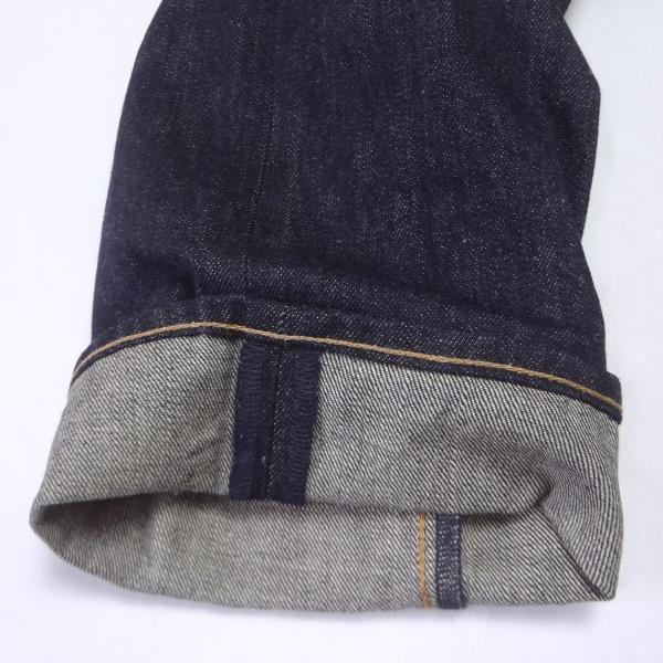 ・レジスターマークレッドタブ、ボタンフライ、V字ステッチ補強、レザーパッチ、5ポケットリベット