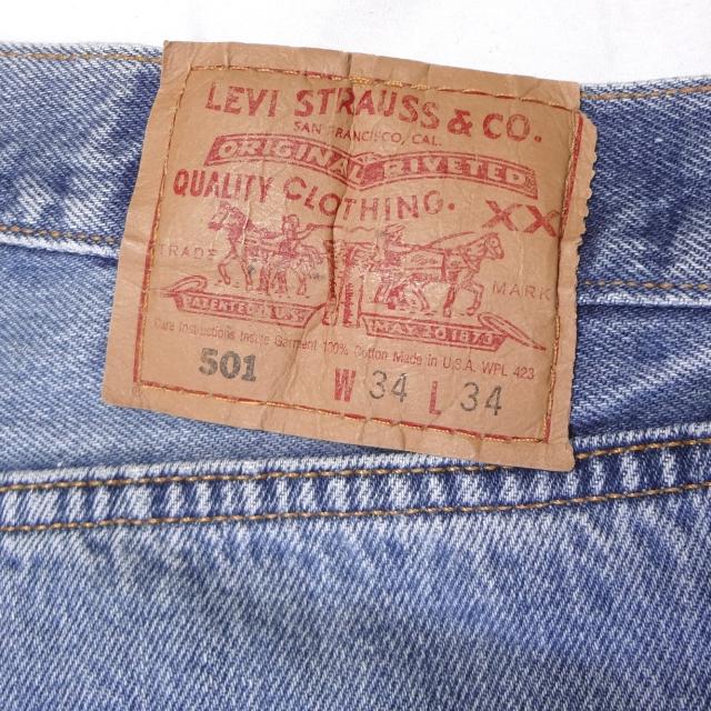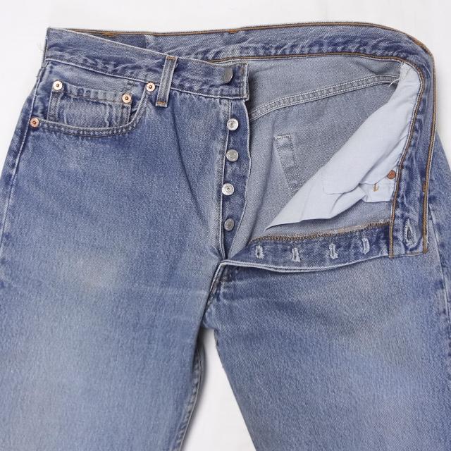 リーバイスの米国製中古501、古着USA製ジーンズ、アメリカ製ジーパン、1998年製造Levi's、綿100%、インディゴブルー