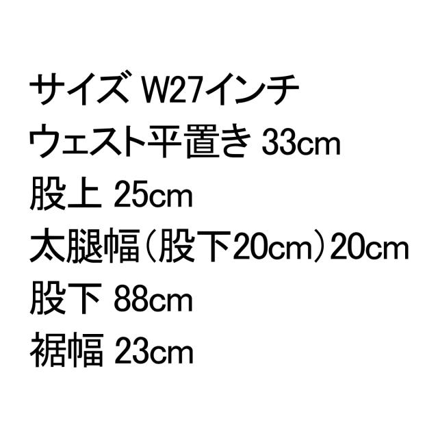 ・サイズW27インチ/ウェスト平置き33cm/股上25cm/太腿幅(股下20cm)20cm/股下88cm/裾幅23cm