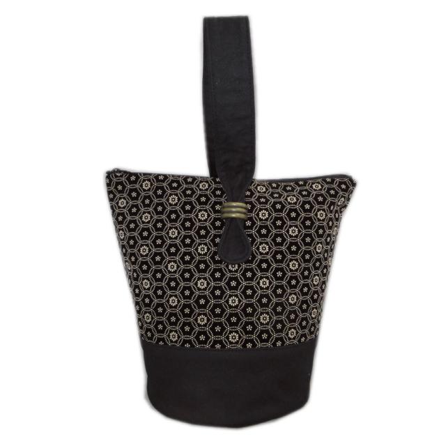 バッグ トート 印伝調 一本手 黒色地輪つなぎ小花 日本製 女性用 レディース メンズ 男性用 着物 浴衣 きもの ゆかた 和装 洋服 ファスナー