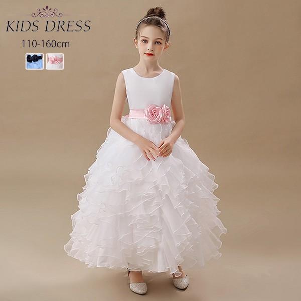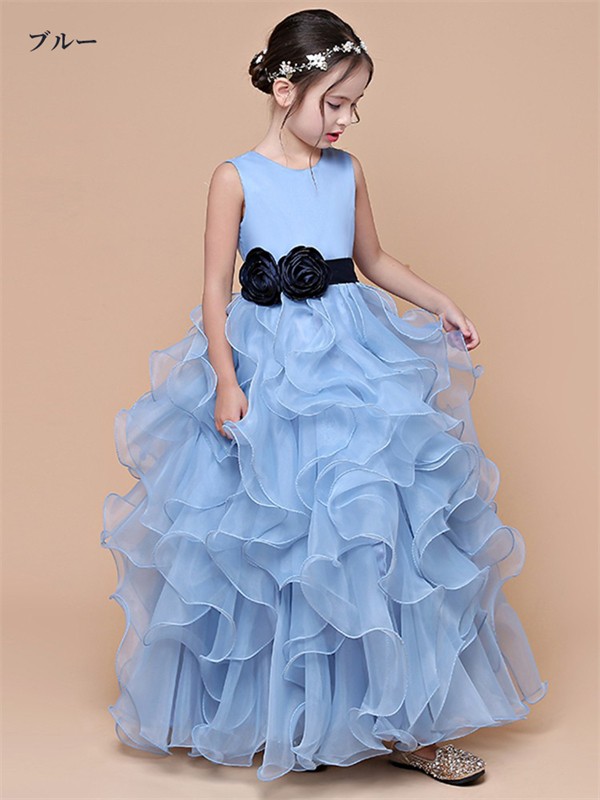 ピアノ発表会 ドレス キッズ キッズドレス ワンピース ロングドレス ロング丈 子供ドレス ジュニア ノースリーブ 白 ブルー お姫様 上品 可愛い ベビードレス 女の子 結婚式 卒業式 入学式 子ども フォーマル 誕生日 音楽会 パーティー 中学生 110 120 130 140 150 160