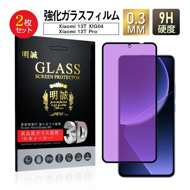 【2枚セット】Xiaomi 13T / Xiaomi 13T Pro 強化ガラス保護フィルム ブルーライトカット クリア仕様 目に優しい 視力保護 耐衝撃 耐摩擦 3D 全面保護