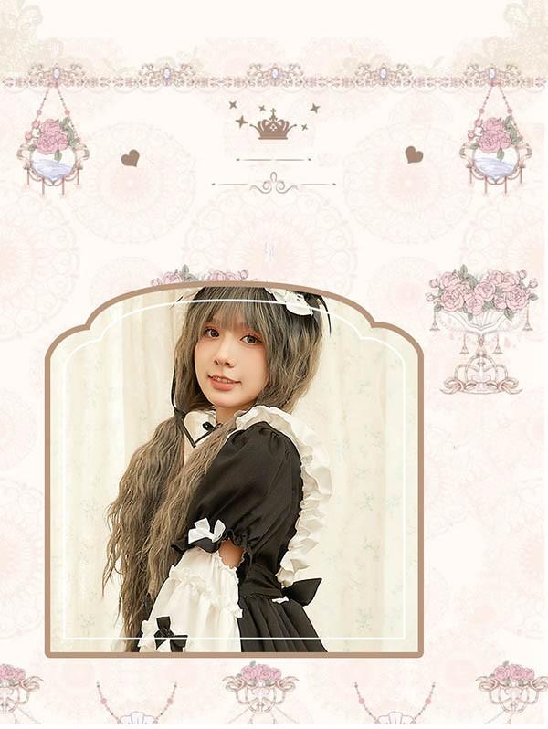 メイド服 ロリータワンピース 長袖 ブラック ヘッドドレス 付け襟 付け袖 白黒 クラロリ 秋冬 膝丈 リボン レディース lolita ロリータ トップス 小柄 可愛い 着?せ 女の子 袖あり ゴスロリ dd145x1x1l9