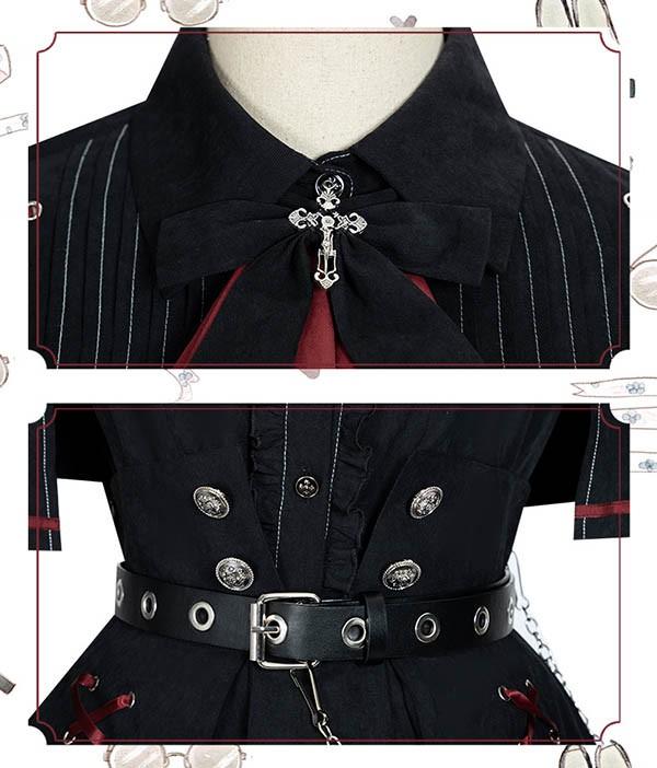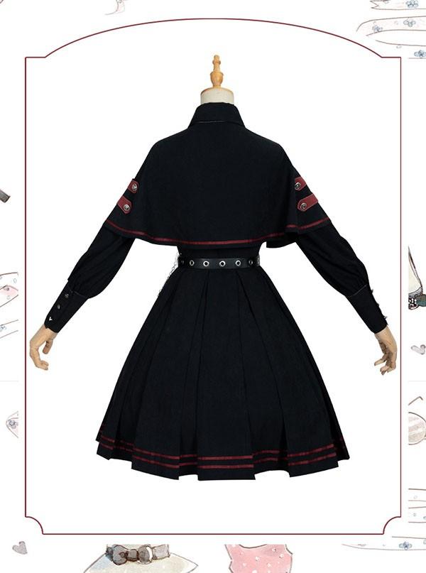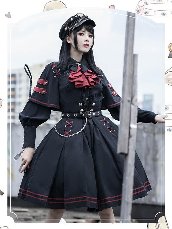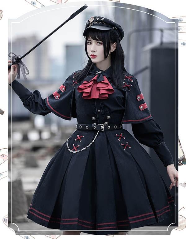 ミニロリ 軍服ロリータ フルセット ブラウス スカート 上下フルセット ミリタリーロリィタ ブラック 黒 膝丈 レディース ロリータアウター 着?せ 女の子 長袖あり ゴスロリ 厚手 防寒 寒さ対策 柔らかい 軽い着心地 暖かい dd143x1x1l9